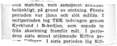 TBK/Tapparan historian ensimmäisen mestaruussarjamaalin tekijä ei ole ollut tiedossa vuosikymmeniin. Vasta kesällä 2021 kaivaukset lehtiarkistoissa nostivat esiin Hufvudstadbladetin raportin TBK:n ensimmäisestä SM-pelistä 24.1.1943, jossa Tampereella vieraana oli helsinkiläinen KIF. Siinä kerrottiin pelin avausmaalin tekijäksi tamperelaisten Kyrklund.