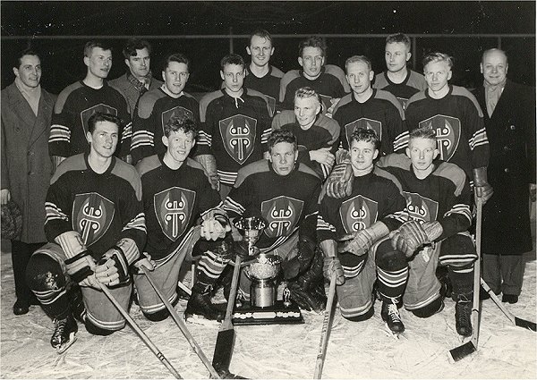 Eturivissä vasemmalla polvillaan on Kalevi Numminen, vieressään Matti Haapaniemi. Keskellä edessä voittopytyn takana on maalivahti Esko Niemi, jonka hartioihin nojaa Heikki Pussinen. Eturivin täydentävät Simo Liimatainen ja Yrjö Hakala. Takarivissä vasemmalla siviilivaatteissa huoltaja Reino Torikka, ja sitten pelaajista Rauno Malm, Matti Kaski ja Jouni Seistamo. Keskellä takana muita korkeammalla on Esko Luostarinen, jonka vieressä Seppo Liitsola, Aulis Hirvonen, Erkki Hytönen ja Arimo Mäkinen. Äärimmäisenä oikealla siviilivaatteissa Jaakko Hietaniemi ja takarivissä kolmantena vasemmalta Jarl Ohlson, jotka toimivat joukkueen valmentajina.