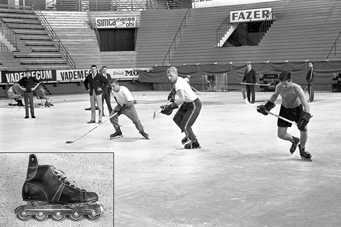 Mutta jo 1960-luvun puolivälin jälkeen Tappara treenasi kesällä Hakametsän jäättömässä hallissa rullaluistimilla, joissa oli viisi pyörää yhdessä linjassa peräkkäin! Kuvassa terävää lähtöä treenaavat Jouni Seistamo, Juhani Peltola ja Harri Harvala.