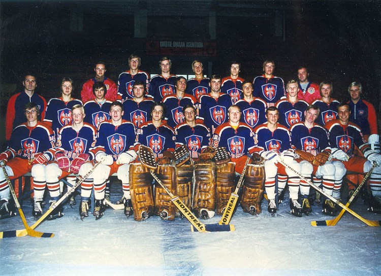 Keskirivissä vasemmalta: Kalevi Numminen (valmentaja), Antero Lehtonen, Jukka Alkula, Ilpo Kuisma, Keijo Järvinen, Juhani Saarelainen, Teemu Sistonen, Pertti Ansakorpi, Keijo Männistö, Antti Virtanen (apuvalmentaja)