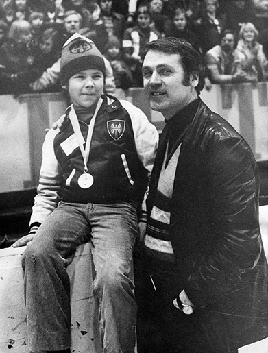 Kallu Numminen on ottanut poikansa Tepon juhlimaan Suomen mestaruutta 1977. Kuvassa yhdeksänvuotiaalla Tepolla on isänsä kultamitali kaulassa, mutta tästä ei mennyt kuin toiset yhdeksän vuotta nuoren ihmisen elämää, kun kaulaan ripustettiin jo ihan itse voitettu kultamitali.
