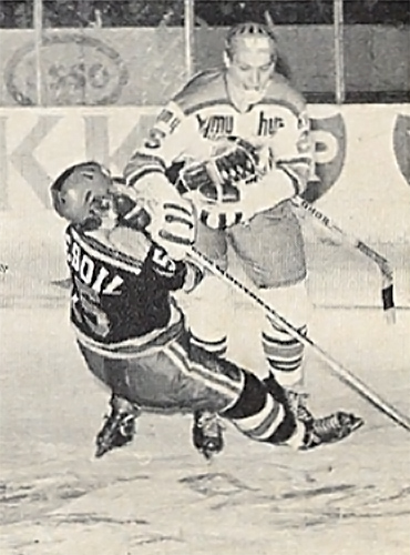 195-senttinen Antti ”Professori” Perttula näyttää esimerkkiä siitä miten käy, kun Ilves-pelaaja törmää graniittiseen varteen vuonna 1972. Myös maalinteko maistui, sillä Perttula iski kaksi hattutemppua kaudella 1971-72.