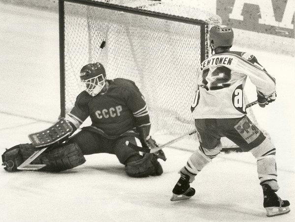 Syyskuussa 1985 Tappara kohtasi harjoitusottelussa Neuvostoliiton B-maajoukkueen, jossa tosin vahvistuksena oli myös maailman paras hyökkäysketju Krutov-Larionov-Makarov. Turpiin tuli niin että tukka lähti: 2-10. Erkki Lehtonen pääsi iskemään kuvan osoittamalla tavalla joukkueensa toisen osuman Vladimir Myshkinin taakse.