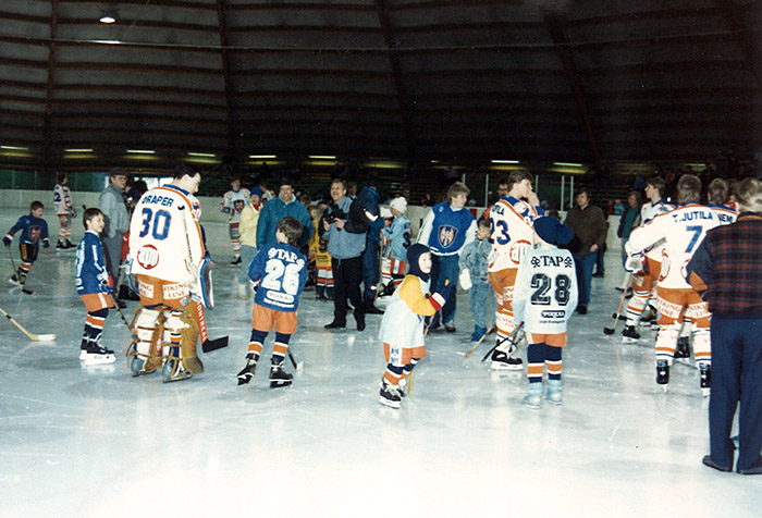 Luistelutapahtuma Posted on 4.5.2021 by terolapio Isot ja pienet tapparat yhteisessä luistelutapahtumassa Hakametsän kakkoshallissa kaudella 1987-88. Jaa tämä: Click to share on X(Avautuu uudessa ikkunassa) X Jaa Facebookissa(Avautuu uudessa ikkunassa) Facebook Tykkää Lataa... Aiheeseen liittyy
