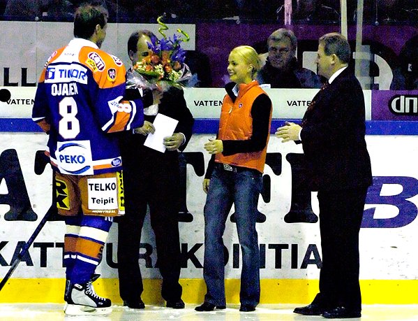 Tapparan talven 2005-06 kirkkaimpia tähtiä oli taitoluistelija Kiira Korpi. Tapparan liigajoukkuekin halusi toivotella entisen valmentajansa Rauno Korven tyttärelle onnea Torinon olympiakisoihin. Kiiraa kukittamassa Tapparan kapteeni Janne Ojanen, kukkapuskan takana piilossa oleva toimitusjohtaja Mikko Leinonen sekä Tamhockeyn hallituksen puheenjohtaja Kai Miesmäki.
