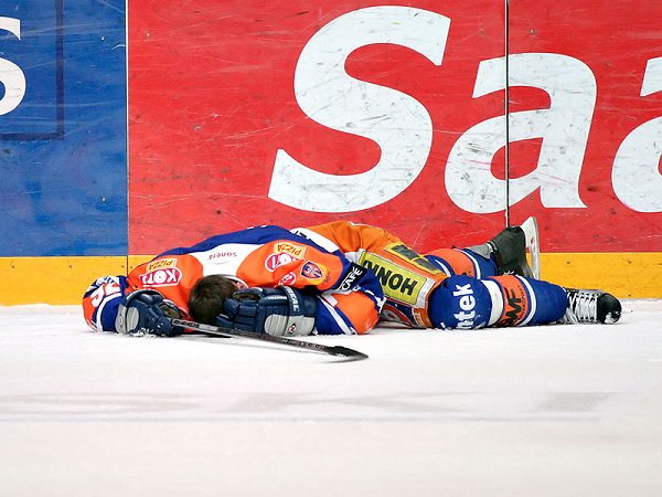 Tapparan ja Ässien välinen puolivälieräsarja 2006 oli kuuma ja poiki niin loukkaantumisia kuin pelikieltojakin. Tapparasta Pasi Puistola ja Janne Grönvall joutuivat jättämään koko kauden kesken vammojensa takia. Tässä jäässä makaava Teemu Laine missasi kaksi ja puoli erää saatuaan taklauksen päähänsä, mutta teki seuraavassa ottelussa kaksi maalia.