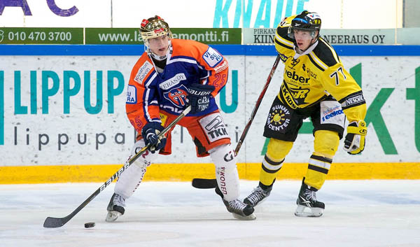 Aivan liigakauden 2010-11 kynnyksellä Tappara hankki ykkössentterikseen kanadalaisen Kevin Doellin. Tämä täytti paikkaodotukset olemalla joukkueen paras maalintekijä ja pistemies lukemin 18+20=38 ja keräsi vielä jäähyminuuttejakin 105. Kuvassa häntä pyrkii ahdistelemaan SaiPa-paitainen Elmeri Kaksonen.