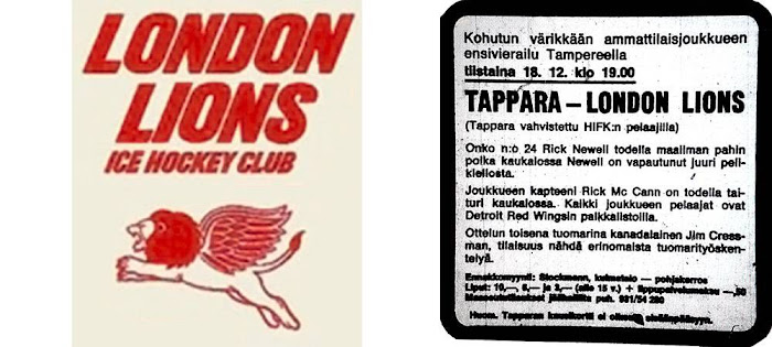 Tappara kohtasi Lionsin joulukuun 18. päivä 1973. Sitä ennen Lions oli Suomessa hävinnyt TPS:lle peräti 2-8, voittanut SaiPan 7-4 ja IFK:n 3-2. Tapparakin taipui lontoolaisille 4-7.