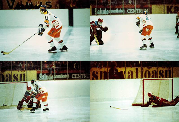 Kolmannen erän alussa Tappara-tulokas Jorma Sevón veivasi maajoukkuepakki Gennadi Tshigankovin solmuun, ja tämän oli pakko kampata rangaistuslaukauksen arvoisesti. Martti Jarkko huijasi Tretjakin rankkarissa ja kavensi lukemiksi 2-4.