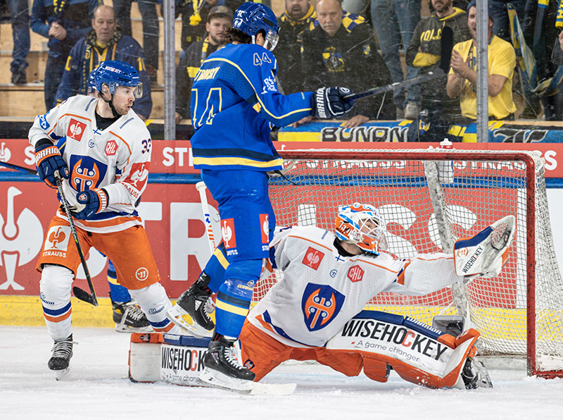 Christian Heljanko nimettiin Champions Hockey Leaguen MVP:ksi eli liigan arvokkaimmaksi pelaajaksi kaudella 2022-23. Heljanko torjui 12 CHL-peliä, joissa piti nollan neljä kertaa, päästi keskiarvona vain 1,33 maalia per ottelu ja torjui 95,12 prosentin tarkkuudella. Kuvassa playoff-vastustaja HC Davosin Matěj Stránský saa todeta Heljangon taas ohittamattomaksi. Veli-Matti Vittasmäkikin ihmettelee joukkuetoverinsa torjuntaa.