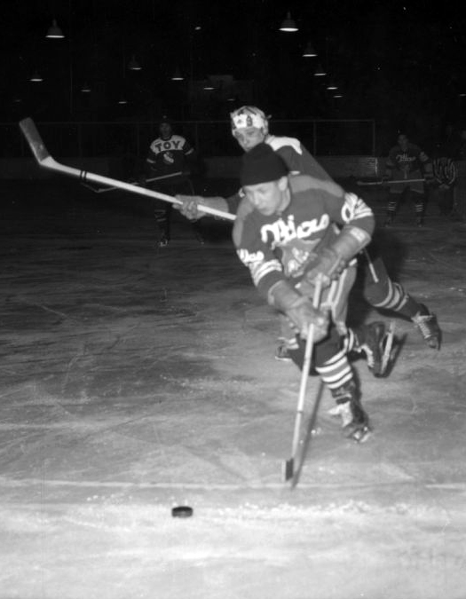 Aulis Hirvonen karkaa ruotsalaisen Sundbybergs IK:n puolustukselta keväällä 1960. Ruotsin kakkostason joukkue joutui taipumaan Koulukadulle Tapparalle maalein 6-3, vaikka kirvesrinnat pelasivat ilman monia MM-kisapelaajiaan.