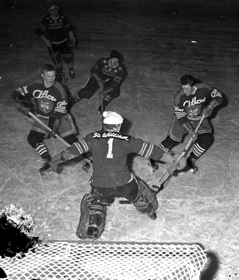 HIFK:n puolustus on pettänyt Tapparaa vastaan kaudella 1959-1960, ja Pentti Hyytiäinen ja Matti Kaski ovat kaksin nokikkain IFK-vahti Erkki Norellin kanssa. Hyytiäinen pisti vielä kiekon maaliinkin. Se oli yksi kymmenestä, kun Tappara voitti 10-1.