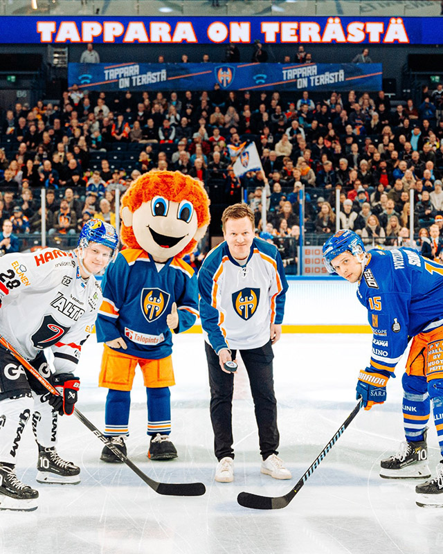 Kuvassa JYPin aloittajana Jere Lassila ja Tapparalta Otto Somppi. Heistä Somppi oli viisivuotias ja Lassila ei ollut vielä edes syntynyt, kun Pirnes laukoi ratkaisumaalinsa. Iso oranssipäinen Pirneksen vieressä on Tapsu.