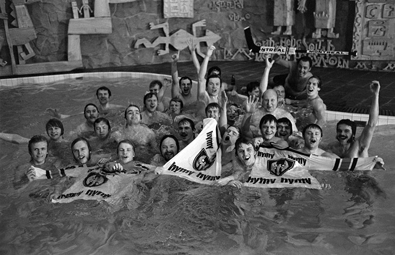 Vuonna 1977 voitetun mestaruuden kunniaksi Tappara pääsi juhlimaan pääsponsorinsa Hymyn omistajan Urpo Lahtisen komeaan graniittilinnaan Villa Urpoon. Ja kun saatavilla on uima-allas, uima-allasta käytetään!