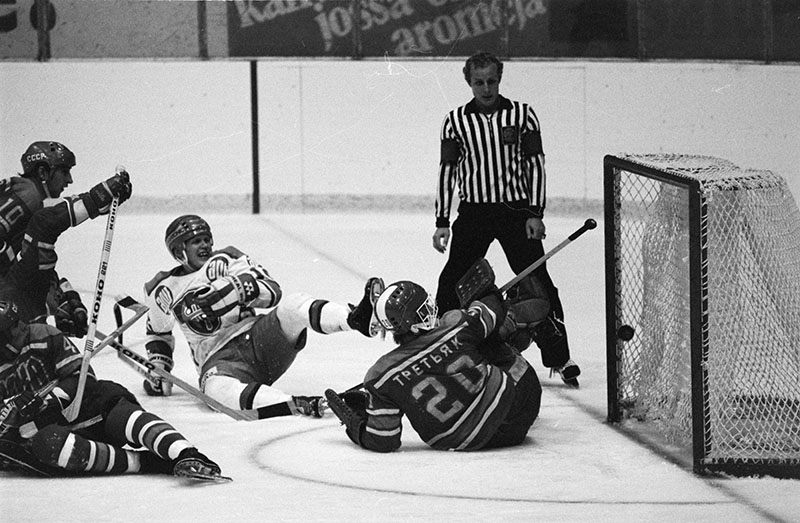 Elokuussa 1977 Tappara kohtasi vuoden 1975 mestarijoukkueiden kesken pelatussa Euroopan Cupissa ylivoimaisen suosikkijoukkueen Moskovan ZSKA:n kahdessa Hakametsässä pelatussa ottelussa. Kaikkien yllätykseksi Tappara voitti ensimmäisen ottelun 2-1, mutta toisessa ottelussa ZSKA oli jo kolmenkin maalin karkumatkalla ja menossa jatkoon yhteismaalein. Sitten Pertti Ansakorpi kavensi. Sitten Ansakorpi kavensi uudelleen. Kuvassa Mussu on juuri nostanut kiekon Vladislav Tretjakin taakse ja kaventanut loppulukemiksi ZSKA:n voittonumerot 5-4. Yhteismaalit olivat siten tasan 6-6. ZSKA meni lopulta jatkoon pitkän rangaistuslaukauskilpailun jälkeen.