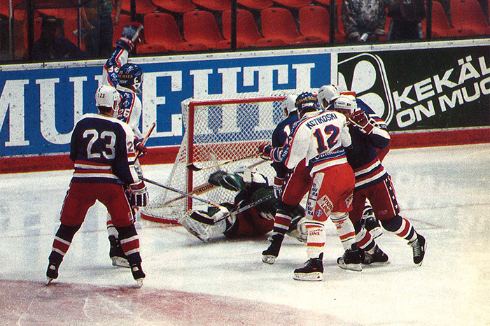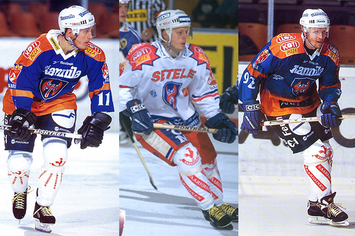 1990-luvun loppupuolella Tapparassa vaikutti kolme Ässä-lähtöistä hyökkääjää: Pasi Tuominen (vasemmalla), Harri Lönnberg (keskellä), ja Rauli Raitanen (oikealla).