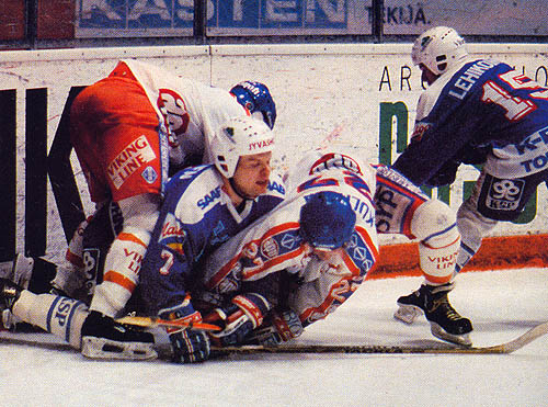 Keväällä 1996 Tappara nappasi ykkösdivisioonan Pelicansista puolustaja Toni Lydmanin, josta myöhemmin kehittyi kova luu Calgary Flamesin takalinjoille. Tapparassa Lyde pelasi kaksi kautta ennen siirtymistään HIFK:n kautta NHL:ään. Tässä kuvassa mies ensimmäisellä liigakaudellaan 1996-97.