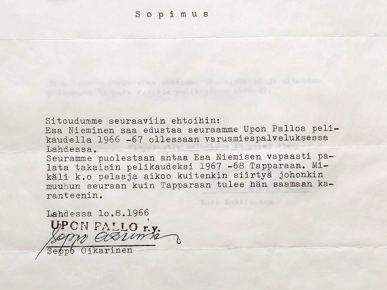Edustusoikeuksilla käytiin myös eräänlaista lehmänkauppaa. Kun Esa ”Villen isä” Nieminen siirtyi kaudeksi 1966-67 pelaamaan Lahteen Upon Palloon varusmiespalveluksensa ajaksi, seurat kirjasivat ehtoihin, että Tappara antaa vapaan siirron siihen suuntaan ja Upo puolestaan samalla lailla vapaan paluun seuraavaksi kaudeksi — paitsi jos Nieminen menisikin johonkin muualle kuin Tapparaan, jolloin karanteeni astuisi voimaan.