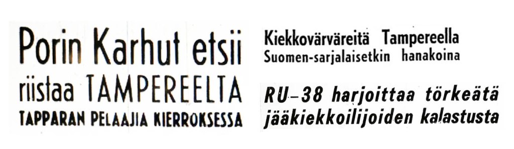Tapparasta Lampainen ei saanut tälläkään kertaa vietyä ketään Poriin, mutta Ilveksen kohdalla verkkoon jäi kunnon saalis, kun Raimo Kilpiö, Kalevi Rassa ja Pertti Kontto lähtivät länsirannikolle.