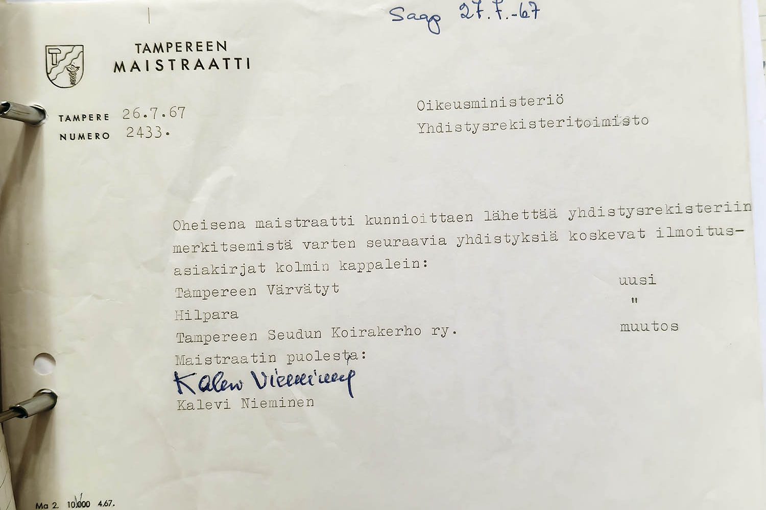 Viereisen listan pelaajat siirrettiin Tapparan kakkosjoukkueen alaisuudesta Hilparan riveihin heti heinäkuussa 1967, kun uusi seura oli rekisteröity. Listasta puuttuu vielä muutama nimi, joiden peliluvan saamista Hilparaan anottiin Jääkiekkoliitolta erikseen myöhemmin.