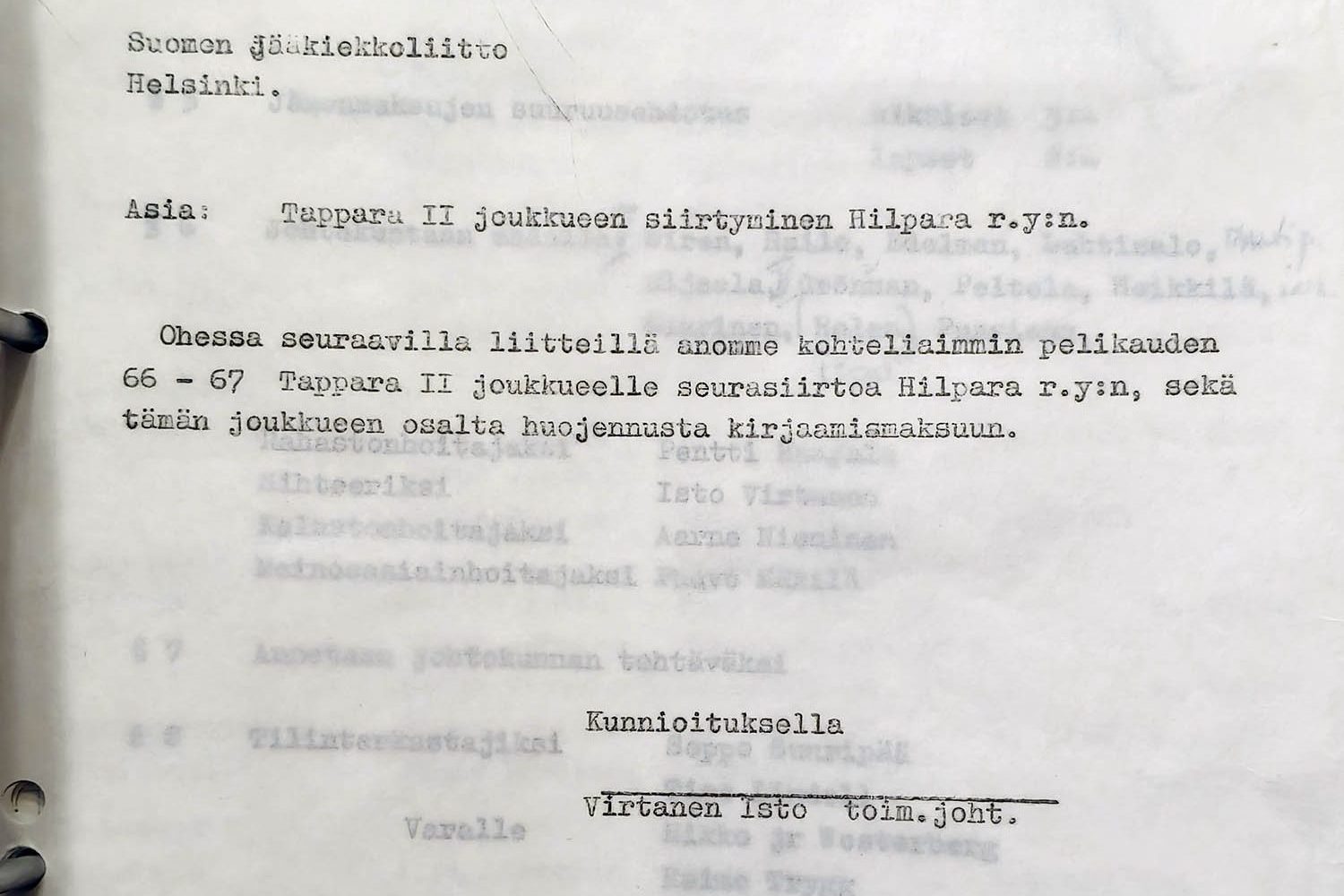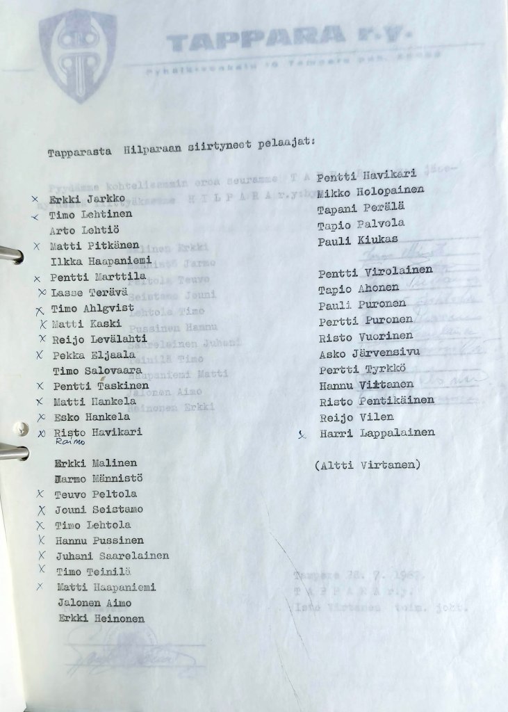 Näissä lisäanomuksissa mukana oli mm. Tapparan entinen mestaripelaaja ja edustusjoukkuetta valmentanutkin Erkki Hytönen, jolle anottiin myöhästynyttä siirtolupaa sillä perusteella, ettei hän ollut kolmeen edelliseen kauteen enää pelannut Tapparan joukkueissa. Hilparan kautta Tapparan 1970-luvun alkupuolen mitalijoukkueisiin ja jopa A-maajoukkueeseen saakka noussut Mikko Mynttinen puolestaan saatiin rekisteröidyksi myöhässä Hilpara-pelaajaksi sillä perusteella, että hänen vanha seuransa Tampereen Kisatoverit lopetti jääkiekon pelaamisen ja mies jäi ilman pelipaikkaa.