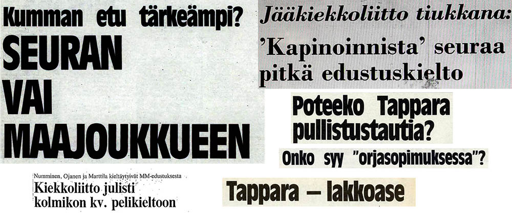 Lehdistössä Tappara-kohua polemisoitiin kovasti. Iltalehdessä Reijo Suikki epäili, että taustalla muhi kiista arvovallasta paitsi seura- ja maajoukkueiden välisisissä eduissa, niin myös henkilöasioissa, kun Hannu Jortikka Kärpistä oli valittu nuorten maajoukkueen päävalmentajaksi Tappara-ehdokkaiden ohi. Saman lehden Jari Jokinen spekuloi syypääksi Jääkiekkoliiton aiemmin läpi runnomaa sopimusta, jonka mukaan edelliskevään alle 18-vuotiaiden EM-kultaa voittaneet pelaajat velvoitettiin olemaan maajoukkueen käytettävissä aina 22 ikävuoteen tai 60 pelattuun A-maaotteluun saakka. Se esti myös pelaajien siirtymisen NHL-kaukaloihin. Tämän ”orjasopimuksen” rikkomisesta oli vieläpä asetettu satojen tuhansien markkojen sakko. Jokinen pohti, oliko Tappara-pelureilla pyrkimys kiristää Jääkiekkoliittoa purkamaan orjuuttava sopimus.