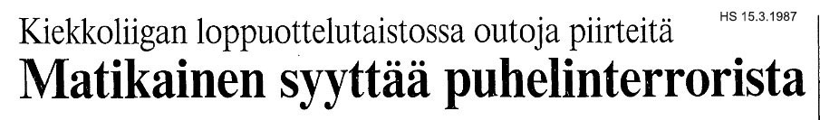 Eivätkä finaalisarjan pikkukohut siihen loppuneet. Perjantain Oulun pelin jälkeen sarjaa jatkettiin sunnuntaina Tampereella. Pelipäivän aamuna ennen neljättä ottelua Helsingin Sanomissa kerrottiin Pentti Matikaisen syyttävän Rauno Korpea puhelinterrorista!